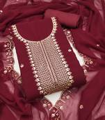 Women's Maroon Unstitched Heavy Thread Embroidered Georgette Dress Material