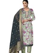 Women'S Multi Unstitched Stylish Handwork, Designer Digital Print And Fancy Border With Banarasi Woven Dupatta Organza Dress Material Having Green Color Unstitched Bottom Of Santoon Fabric And Grey Color Dupatta Of Organza Banarasi Material With Beautifull Multi Colour In Organja Santoon Organja Banarasi Fabric With Work Of Stylish Handwork, Designer Digital Print And Fancy Border With Banarasi Woven Dupatta|| Images Are For The Referance Purpose Only, Color Of The Actual Product May Little Vary From The Image Due To Screen Resolution