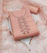 • Product Id : 4452776 • Package Details : 1 Unstich Top/1 Unstich Bottom/1 Dupatta • Type : Dress Materials • Type : Thread Work • Look : Designer • Sleeve : Quarter Sleeve • Neck Style : Round Neck • Stitching : Unstitched • Fabric : Organza • Color : Peach • Work : Thread Embroidery Stitching [+]
