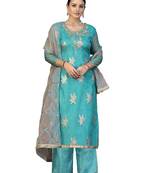 • Product Id : 4293107 • Package Details : 1 Top/1 Bottom/1 Dupatta • Type : Dress Materials • Type : Hand Embroidery • Look : Fashion • Sleeve : Quarter Sleeve • Stitching : Unstitched • Fabric : Organza • Color : Blue • Work : Hand Embroidery Stitching [+]