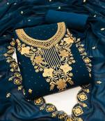 Women's Teal Blue Unstitched Heavy Zari Embrodiery With Embroidered Dupatta Georgette Dress Material