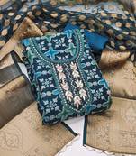Women's Teal Blue Unstitched Position Work Viscose Organza Dress Material