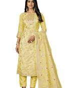 • Product Id : 4309122 • Package Details : 1 Top/1 Bottom/1 Dupatta • Type : Dress Materials • Type : Hand Embroidery • Look : Fashion • Sleeve : Quarter Sleeve • Stitching : Unstitched • Color : Yellow • Fabric : Silk Blend • Work : Hand Embroidery Stitching [+]