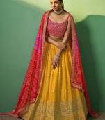 The Ensemble Is Beautifully Complemented By A Red Organza Dupatta With Printed Work. Perfect For Weddings, Receptions, And Engagements, This Yellow Lehenga Choli Is A True Representation Of Beauty In Simplicity.Specifications [-]