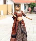 • Style : Circular Lehenga • Fabric : Cotton • Color : Black,Maroon • Work : Printed Blouse Details