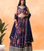 Make A Stunning Style Statement With This Purple Lehenga Crafted From Rich Chinnon Fabric. It Features Digital Floral Prints Adorned With Intricate Embroidery For An Elegant Finish.
