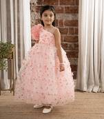 Peach 3d Flowers Butterflies Net One Shoulder Dress