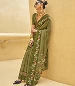 Dark Olive Green Printed Georgette Contemporary Saree