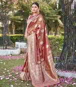Exquisite Designs With This Rust Simar Silk Zari Woven Saree