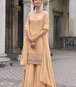 • Style : Sharara • Color : Peach • Fabric : Faux Georgette • Max Length : 2.0 • Length : 2.0 • Color : Peach Dupatta Details