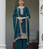 • Fabric : Georgette • Color : Dark Teal • Style : Palazzo • Max Length : 2.0 • Length : 2.0 • Color : Dark Teal Dupatta Details