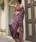 Get going with this majestic and wonderful piece and make your dream attire look richer to your persona. Look ethnic in this affluent wine colour georgette satin contemporary style saree. Beautified with digital print work all synchronized well with the pattern and design of the attire. Comes with matching blouse. (Slight variation in color, fabric & work is possible. Model images are only representative.)