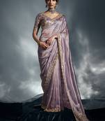 Lilac Tissue Organza Saree With Moti, Cutdana & Sequin Work