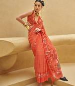 Monjolika Fashion Presents This brilliant array will make you the ultimate classic beauty at the next event you attend. You are sure to make a strong fashion statement with this salmon georgette contemporary saree. This ravishing attire is amazingly printed saree. Comes with matching blouse. (Slight variation in color, fabric & work is possible. Model images are only representative.)