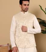 • Product Id : 4587719 • Package Details : 1 Nehru Jacket • Type : Nehru Jacket • Fabric : Silk • Work : Embroidered • Type : Thread Work • Look : Traditional • Sleeve : Full Sleeve • Neck Style : Chinese Collar Kameez • Color : Beige • Top Color : Beige • Top Fabric : Silk • Stitching : Stitched Payments [+]