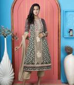 • Kameez : Color- Green • Dupatta : Color- Beige / Fabric- Faux Chiffon • Bottom : Color- Brown / Fabric- Faux Crepe Kameez Details