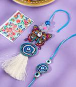 Blue Evil Eye Artificial Beads Set Of 2 Bhaiya Bhabhi Rakhi With Roli Chawal Chandan & Mishri