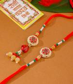 Celebrate the bond of love and protection with the NVR Set of 2 Red Artificial Stones and Beads Bhaiya Bhabhi Rakhi. Adorned with intricate artificial stones and beads, these Rakhis add a vibrant and festive touch to your celebration. Designed for both Bhaiya and Bhabhi, this set is perfect for expressing affection and blessings. The set includes Roli, Chawal, Chandan & Mishri to complete the traditional Raksha Bandhan rituals. A thoughtful and meaningful gift for your brother and sister-in-law on this special occasion.