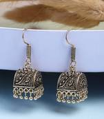 Women Gold Plated Oxidized Contemporary Jhumka Earrings