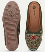 Pairs4u Women's Dark Green Embroidered Canvas Jutti Slip On Ethnic Flats With Stylised Toe For Comfort &