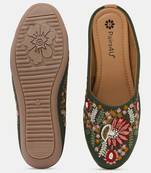 Pairs4u Women's Dark Green Mojari Jutti Embroidered Canvas Flats With Comfortable Pvc Sole For Ethnic Wear