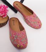 Pairs4u Women's Peach Embroidered Canvas Juttis Ethnic Slip On Flats With Comfortable Pvc Sole