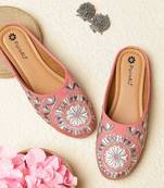 Pairs4u Women's Peach Mojari Jutti Ethnic Embroidered Flats Canvas Slip On Comfortable Sole