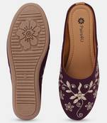 Pairs4u Women's Wine Embroidered Mojari Juttis Stylish Canvas Flats With Comfortable Pvc Sole For Ethnic Wear