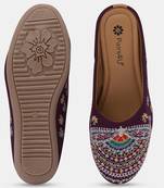 Pairs4u Women's Wine Ethnic Embroidered Canvas Juttis With Comfortable Pvc Sole For Universal Occasions