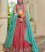 • Style : Circular Lehenga • Fabric : Satin • Work : Embroidered • Color : Pink Blouse Details
