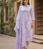 Lavender White Cotton Embroidered Kurta Pant Dupatta Set for Women.