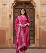Rani pink kurta set, cotton kurta pant dupatta, embroidered kurta for women, ethnic wear for women, festive outfit, party wear suit set, women’s cotton suit, Indian ethnic set, designer kurta set, traditional wear for women.Specifications [-]