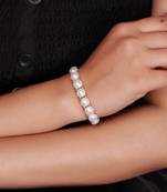 • Product Id : 3652182 • Package Details : 1 Bracelet • Type : Bracelets Online • Occasion : Casual • Look : Fashion • Jewellery Work : Pearl • Color : White • Plating : Rhodium • Base Material : Alloy • Certification : Brand Certification • Pearl Type : Freshwater • Pearl Shape : Button • Piercing : No • Height : 19.0 • Speciality : Hyderabadi Natural Fresh Water Pearls Bracelet With Certificate Of Authenticity • Care : Protect It From Perfume, Water And Hard Chemical Substances And Paper Which Looses Colour Payments [+]