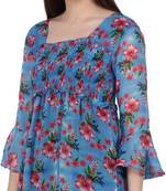 Popwings Blue Floral Print Chiffon Smocked Peplum Top