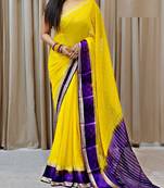• Border : Contrast Border • Fabric Of : Georgette • Color : Yellow Blouse Details