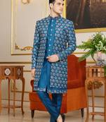• Product Id : 4579946 • Package Details : 1 Sherwani / 1 Pajama / 1 Jacket • Type : Indo Western For Men • Fabric : Art Silk • Work : Embroidered • Look : Designer • Sleeve : Full Sleeve • Color : Blue • Bottom Color : Blue • Top Color : Blue • Top Fabric : Art Silk • Bottom Fabric : Art Dupion Silk • Bottom Style : Afghani • Stitching : Stitched Payments [+]