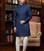 • Product Id : 4578065 • Package Details : 1 Sherwani / 1 Pajama • Type : Indo Western For Men • Fabric : Jacquard • Work : Embroidered • Look : Designer • Bottom Style : Trouser • Sleeve : Full Sleeve • Color : Blue • Bottom Color : Off White • Top Color : Blue • Bottom Fabric : Art Dupion Silk • Top Fabric : Jacquard • Stitching : Stitched Payments [+]