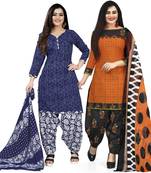 Trendy Suit look pretty like never before.Wearing this Blue And Orange Color Suit which made from Cotton with Blue And Orange Colored Cotton Salwar Bottom and Multicolor Colored Cotton Dupatta.Suit has also decorative work like Floral.This beautiful suit features a classy Printed Work all over,which makes it a smart pick for all occasions. You can wear this Suit in different styles. You can wear it occasionally or casually.