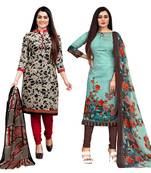 Beige And Pista Green Cotton Printed Unstitched Salwar Suit Material (Combo Of 2)