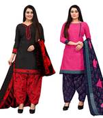 Rajnandini Black And Magenta Cotton Printed Unstitched Salwar Suit Material (Combo Of 2)