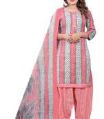 Peach & White Cotton Blend Printed Ready To Wear Patiala Salwar Suit Stitched