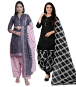 Women Multicolor Cotton Printed Ready To Wear Patiala Salwar Suit Combo Pack Of 2 Stitched