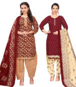 Women Multicolor Cotton Printed Ready To Wear Patiala Salwar Suit Combo Pack Of 2 Stitched