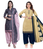 Women Multicolor Cotton Printed Ready To Wear Patiala Salwar Suit Combo Pack Of 2 Stitched