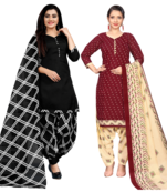Women Multicolor Cotton Printed Ready To Wear Patiala Salwar Suit Combo Pack Of 2 Stitched