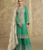 Green Embroidered Chinnon Silk Free Size Stitch Gharara Suit With Dupatta Semi stitched