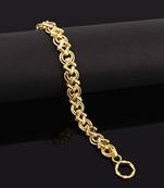 Show off your signature style with this designer shiny gold plated bracelet from the SANAA CREATIONS. Crafted to perfection and easy to maintain, this bracelet can be worn with your favorite casual attire or as a statement piece with formal wear to make heads turn in admiration. The interlinked design is a sure stunner! The stainless steel base ensures durability. This piece of jewelry comes with the SANAA CREATIONS assurance of quality and durability.Caring for your fashion jewelry: We, at SANAA CREATIONS, take care of every piece of jewelry so that you don't spend hours caring for them. But do remember, fashion jewelry lasts longer when kept dry and free of chemicals. Follow this simple rule: Your jewelry should be the last thing you put on and the first thing you take off.