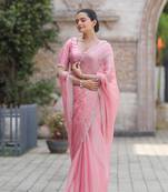 Pink Embroidered Tussar Silk Bollywood Sarees With Blouse