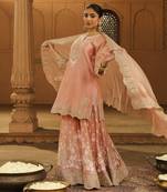 • Product Id : 4522955 • Package Details : 1 Short Kurta / 1 Sharara / 1 Dupatta • Type : Sharara Suits • Fabric : Silk • Work : Embroidered • Type : Thread Work • Look : Traditional • Sleeve : Quarter Sleeve • Color : Baby Pink • Stitching : Stitched • Length : 42.0 Stitching [+]
