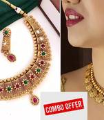• Product Id : 4269120 • Package Details : 2 Necklace/2 Pair Of Earring • Type : Necklace Sets • Jewellery Work : Gold Plated • Color : Gold • Plating : Yellow Gold • Base Material : Alloy • Height : 10.0 Payments [+]